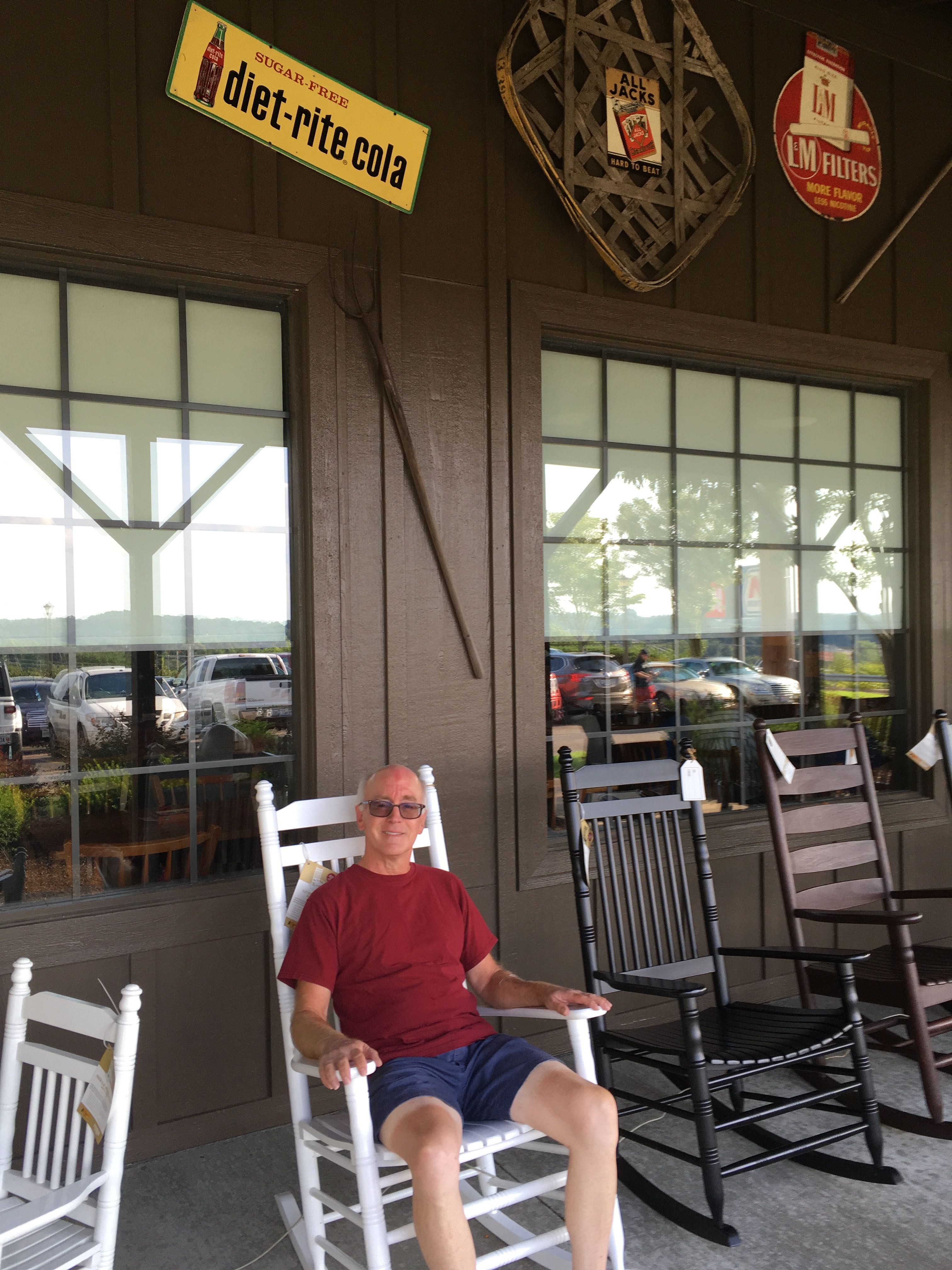 Previous Image Next Image IMG_4654 My first visit to a Cracker Barrel. Apparently, sitting in the rockers is a thing.